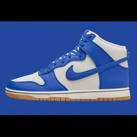 The high-top silhouette offers excellent ankle support, making it ideal for both casual wear and active use. The premium leather construction ensures durability, while the padded collar and cushioned insole provide comfort throughout the day. The iconic Nike Swoosh, prominently displayed on the sides in blue, completes the design, reinforcing the brand's heritage and appeal. The "Racer Blue" colorway is expected to be a hit, appealing to both long-time Dunk fans and newcomers. With its vibrant color scheme and classic silhouette, the Nike Dunk High "Racer Blue" is a must-have for any sneaker collection.