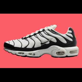 The Nike Air Max Plus is gearing up for the debut of its "Panda" colorway, blending classic charm with contemporary flair. Featuring a crisp white mesh base, the shoe is accentuated by bold black overlays that wrap around the upper, creating a striking contrast. This design not only highlights the shoe's sleek silhouette but also enhances its visual appeal, making it a standout in any sneaker collection. Known for its Tuned Air cushioning technology, the Air Max Plus ensures superior comfort and support, making it suitable for both everyday wear and active lifestyles.