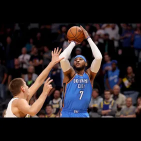 During his rookie season with the Denver Nuggets, Carmelo laced up a plethora of retro and modern Air Jordan PEs, including the Air Jordan 2, Air Jordan 12 and Air Jordan 13. Now that his signature line has reportedly come to an end, it's possible that we'll see Melo take the court in some of those familiar Air Jordans - this time decked out in OKC flavors.