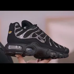 The Nike Air Max Plus will dazzle again with a new collaboration with Swarovski. The upcoming "Moonlight" colorway promises elegance and luxury. This edition features a sleek black base, perfectly contrasted by silver Swarovski crystal details. The sparkling crystals give the shoe a refined and eye-catching look. Black accents complement the base, adding depth and sophistication to the design. These touches enhance the shoe’s iconic silhouette. The Nike Air Max Plus is renowned for its comfort and style, and this collaboration takes it to new heights of luxury. The "Moonlight" colorway is not just visually stunning.