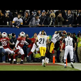 Ben Roethlisberger's 6-yard touchdown pass to Santonio Holmes with 35 seconds remaining on the clock is arguably the best catch and throw combination in Super Bowl history.