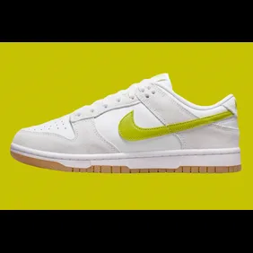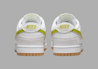 The Nike Dunk Low is gearing up for a fresh release with its upcoming "Bright Cactus" colorway, set to drop later this month. This new edition showcases a white color scheme, complemented by vibrant yellow accents. The combination of classic and bold hues makes this sneaker a standout. The upper features a clean white design, giving it a timeless appeal. The "Bright Cactus" yellow base and Swoosh on the sides add a pop of color that elevates the overall look. This bright yellow not only adds vibrancy but also highlights the iconic Dunk Low silhouette.