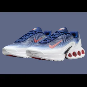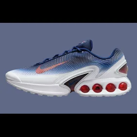 The Nike Air Max DN is a fresh addition to the Air Max lineup. It's known for its modern design and comfort. The upcoming "USA" colorway is eye-catching. It features a white and blue color scheme with striking red details. The uppers are primarily white, giving a clean and crisp appearance. Blue accents add depth and a patriotic touch. Red details enhance the overall look, making it vibrant. This colorway is perfect for showcasing national pride. The Nike Air Max DN excels in comfort. Its cushioning provides excellent support for everyday wear.