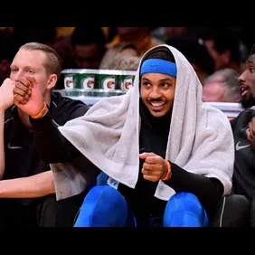 With last night's 22-point performance, Melo moved to 21st overall on the NBA's all-time scoring list with 24,829 points. He passed Ewing, who racked up 24,815 points during his career. Next on the scoring list is the logo, Jerry West, who scored 25,192 over the course of his 14-year NBA career.