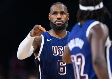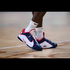 LeBron James is set to turn heads with a special edition of the Nike LeBron 22 in a striking "USA" colorway during the Olympics. Sporting a red, white, and blue color scheme, this sneaker is a tribute to Team USA. The patriotic design features a bold red upper, contrasted by crisp white accents and deep blue details. The Nike LeBron 22 combines cutting-edge performance with eye-catching style. LeBron's quest for gold adds to the excitement, as Team USA remains undefeated. This special edition sneaker celebrates their journey and determination.