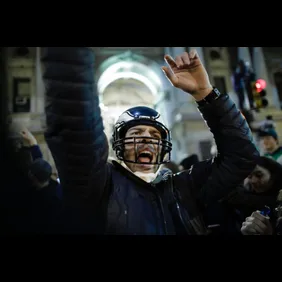 There were chants of, "Fuck Tom Brady," and "Big Dick Nick," in honor of Eagles backup QB and Super Bowl MVP, Nick Foles. Broad Street was packed from building to building, the windows at the Macy’s near City Hall got smashed, and there was an outrageous food fight inside of Philly's beloved WaWa establishment.