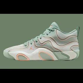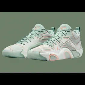 The Jordan Tatum 3, Jayson Tatum's latest signature shoe, is set to drop in a fresh "10K Hours" colorway. This upcoming release features a light green upper, giving the sneaker a bright and modern look. Light salmon details are added throughout, offering a soft contrast that enhances the overall design. The Jordan Tatum 3 is known for its lightweight construction and responsive cushioning, perfect for players who value speed and agility. Overall, the "10K Hours" colorway reflects Jayson Tatum's work ethic.