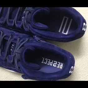 The kicks feature a completely suede upper accompanied by a white midsole and a translucent outsole. The special edition kicks also include "RE2PECT" written across the tongue and Jeter's #2 on the heel, as well as a "2" on the insole of the right shoe and "RE2PECT" on the left insole.