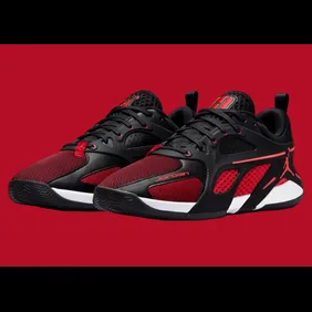 The Jordan Heir is Jordan Brand's latest silhouette, set to release in a bold "Bred" colorway later this holiday season. This edition features a vibrant red base, giving the sneaker an eye-catching appearance. Black overlays provide a striking contrast, enhancing the classic "Bred" color scheme. The combination of red and black makes this pair a standout, perfect for fans of timeless Jordan designs. This fresh colorway will appeal to both sneakerheads and casual wearers alike.