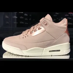 Similar to the "Rose Gold" Air Jordan 11 Low that recently surfaced, this new-look Air Jordan 3 sports a premium suede light pink upper accompanied by rose gold accents such as the eyelets and heel tab. A sail rubber midsole and outsole round out the look.