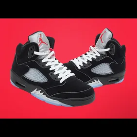 The reimagined Air Jordan 5 perfectly combines performance with stylish details. The signature shark teeth on the midsole are highlighted in grey, amplifying its distinctive design. Additionally, a red Jumpman logo on the tongue ties the colorway together, offering a bold yet timeless aesthetic. With excitement building among sneakerheads, the "Black Metallic Reimagined" release is highly anticipated. This version skillfully merges the Air Jordan 5’s legendary design with fresh, contemporary updates, making it a must-have for collectors and fans alike.