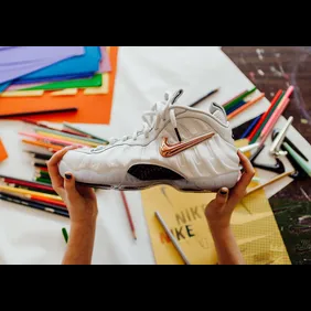 Nike Basketball has revealed a brand new, customizable, Foamposite Pro which comes equipped with multiple removable swooshes that sneakerheads can swap out and velcro into place at their heart's content. The kicks, which come in a white colorway with a black carbon fiber shank plate, will be packaged with silver, teal, bronze and black swooshes.
