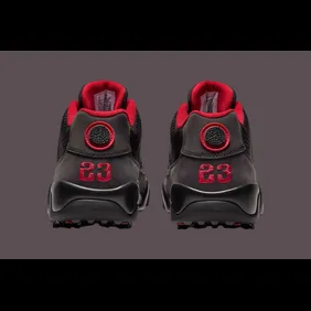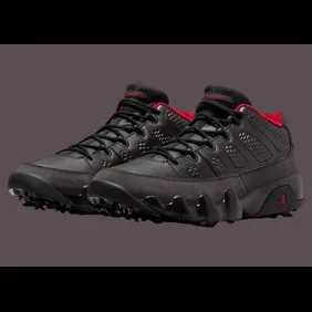 The Air Jordan 9 Golf is set to release in the sleek "Shadow" colorway later this month, and sneaker enthusiasts are already buzzing with anticipation. This version of the iconic Air Jordan 9 is crafted with a black and charcoal color scheme, which gives it a bold, sophisticated look. The dark tones are contrasted by vibrant red accents, including detailing on the heel and tongue, adding a pop of color that enhances the overall design. Built for performance on the golf course, the Air Jordan 9 Golf features the same legendary style of the original.