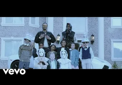 Thugger spend most of the video holding on to an electric lasso, which is being used to restrain a witch, floating in the air and surrounded by ravens. Future lounges on a couch surrounded by hanging body bags. This is not a safe environment for these kids to grow up in!