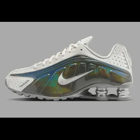 Now, Nike is bringing a new twist with the "White Iridescent" edition. This version keeps the signature Shox DNA but adds a shimmering, reflective effect. The mix of metallic tones and clean white uppers gives the sneaker a sleek, modern look. It’s the perfect fusion of early-2000s nostalgia and contemporary sneaker culture. Whether on the streets or in a collection, this pair is bound to turn heads. The iridescent panels shift colors under different lighting, adding an eye-catching element. This release stays true to the bold, futuristic appeal that made the Shox R4 an icon.