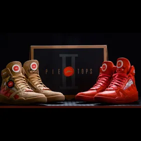 Last March, Pizza Hut collaborated with well known sneaker customizer The Shoe Surgeon on a limited run of "Pie Top" sneakers that were capable of ordering a pizza to your location with the push of the tongue. Today, Pizza Hut, “the Official Pizza of the NCAA March Madness and the Final Four,” unveiled the Shoe Surgeon's "Pie Top II" which comes in two coloways, "Marinara Red" and "Wheat."