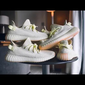 Over the weekend we got our best look at the "Butter" Yeezys, which reportedly utilize a new reversed primeknit design with the "SPLY-350" text and stripe on the inner side. The kicks are built on a monochromatic color scheme, featuring a light shade on the primeknit upper as well as a neon heel tab and laces.