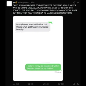 Kanye West seems committed to drumming up the skeletons in Playboi Carti's closet. He referred to the rapper as a woman beater in several other tweets. One of which alleges that Carti contacted him and told him to stop tweeting about his support for Nazis. Playboi Carti is far from the first rapper to try to talk the controversial West out of broadcasting his Nazi fascination, and he was met with insults. "Carti a women beater," Kanye West asserted. "Told me to stop tweeting about Nazis who do broke n**gas always try tell me what to do." The tweet got worse from there, and using the foundation of Nazism, you can guess the direction it took.