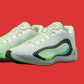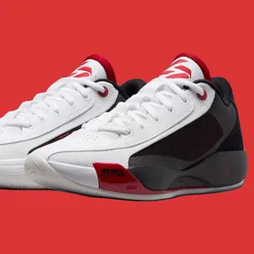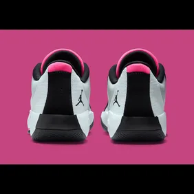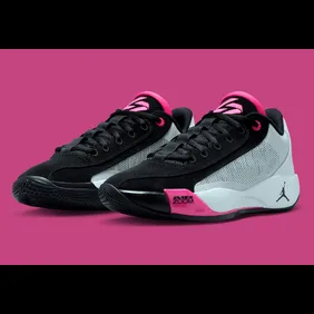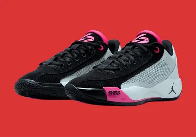 This pair features a mesh and synthetic upper in black and white. Pink hits add contrast across the tongue, heel tab, and Air Zoom branding. The midsole is white, sitting atop a black rubber outsole. Luka’s personal logo appears on the tongue, while the Jumpman lands on the side. Built for quick cuts and standout style, this sneaker blends performance with lots of flair.