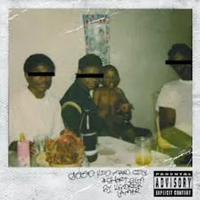 A picture is worth a thousand words, an adage thatparticularly proves itself true when a vintage photograph evokes such mystery,especially one that looks like a Polaroid. Who are these people? That you, Kendrick? Most definitely is, in his uncle's arms, and it looks like he's got something to say. The caption reads "A Short Film By Kendrick Lamar," and the album tells the story of the aftermath in light of the L.A. riots (i.e. Kendrick's youth years). The photo denotes the beginnings of a memory, and keeps in the same vein as Nas and Lil Wayne exploring this theme before him, they who so ubiquitously used baby pictures on their album covers. The deluxe edition features a van, which he refers to in the first track, as his getaway to go pick up his crush.