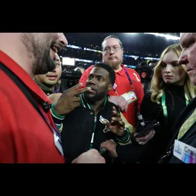Kevin Hart made an appearance on Conan last night and explained exactly what was going through his mind after the Philadelphia Eagles beat the New England Patriots in Super Bowl LII. Specifically, Hart addressed his drunken shenanigans which included trying to get on the podium as the Eagles were being presented the Lombardi Trophy, and dropping and F-bomb during his brief appearance on the NFL Network.