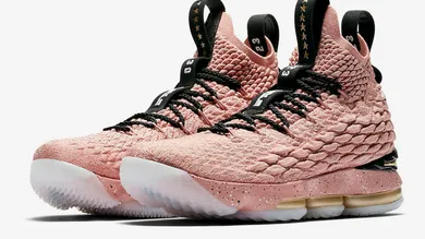 Inspired by the stars on Hollywood's Walk of Fame, the "Hollywood" Nike LeBron 15 comes dressed in a "Rust Pink" colorway accompanied by metallic gold accents and black detailing. Other subtle details include a Los Angeles inspired graphic on the insole and 14 gold stars on the tongue tabs signifying LeBron's 14 straight NBA All-Star appearances.