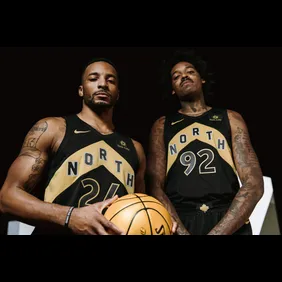 The uniforms feature six points in a chevron design which represents the six boroughs of Toronto, "NORTH" to "represent a territory all our own," and the black and gold color scheme which is a nod to Drake.
