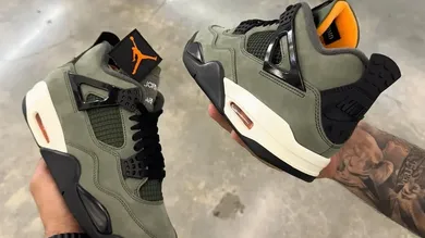The olive upper, black support wings, and cream midsole give the sneaker a rugged look that still feels luxe. You can sign up for updates at undaj4.com while the countdown continues.