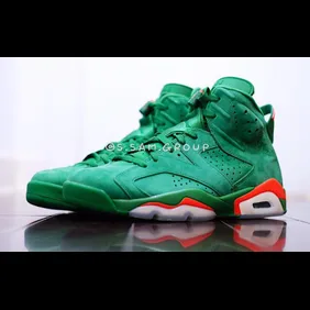 Included in the Gatorade x Air Jordan Collection are two separate Air Jordan 6s, including this green suede pair that will be much more limited than the white/orange rendition.