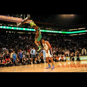 While Nate won the contest, Dwight once again wowed the crowd with his ridiculous display of athleticism, which included dunking on a 12-foot hoop. Of course, Howard's chances of repeating as the NBA's dunk king ended when Nate jumped over him in the finals. It was Robinson's second of three Dunk Contests titles.