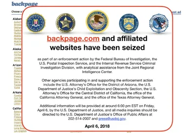 This Backpage seizure comes just two weeks after Craigslist eliminated their personal ads following Congress' passage of the Fight Online Sex Trafficking Act (FOSTA), which repealed a previous law that provided "legal protection to websites that unlawfully promote and facilitate prostitution and websites that facilitate traffickers in advertising the sale of unlawful sex acts with sex trafficking victims.”