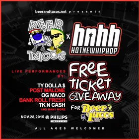 Giveaways We're giving away a pair of tickets for the upcoming Beer and Tacos event in Atlanta, with Post Malone and Ty Dolla $ign.