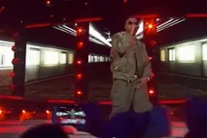 News During the NBA All-Star pre-game performance, Christina Aguilera clears the stage for Nas, who performs "N.Y. State of Mind."