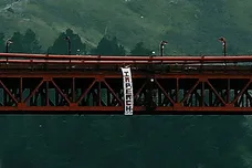 Viral Hollyweed Prankster Hangs Anti-Trump Sign From The Golden Gate Bridge Once again, Jesushands displays his work on an iconic California landmark.