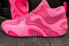 Sneakers Jayson Tatum’s Jordan Tatum 3 "Breast Cancer Awareness" PE features a striking pink design with layered details, honoring a meaningful cause.