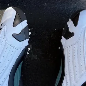 Sneakers Elevate your golf game with sleek white leather and vibrant green accents.