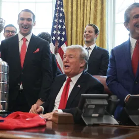 Sports Caps rage with Tiesto in Vegas after winning Stanley Cup.