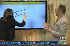 News During a Pictionary-esque game, a news reporter draws something too phallic for television.